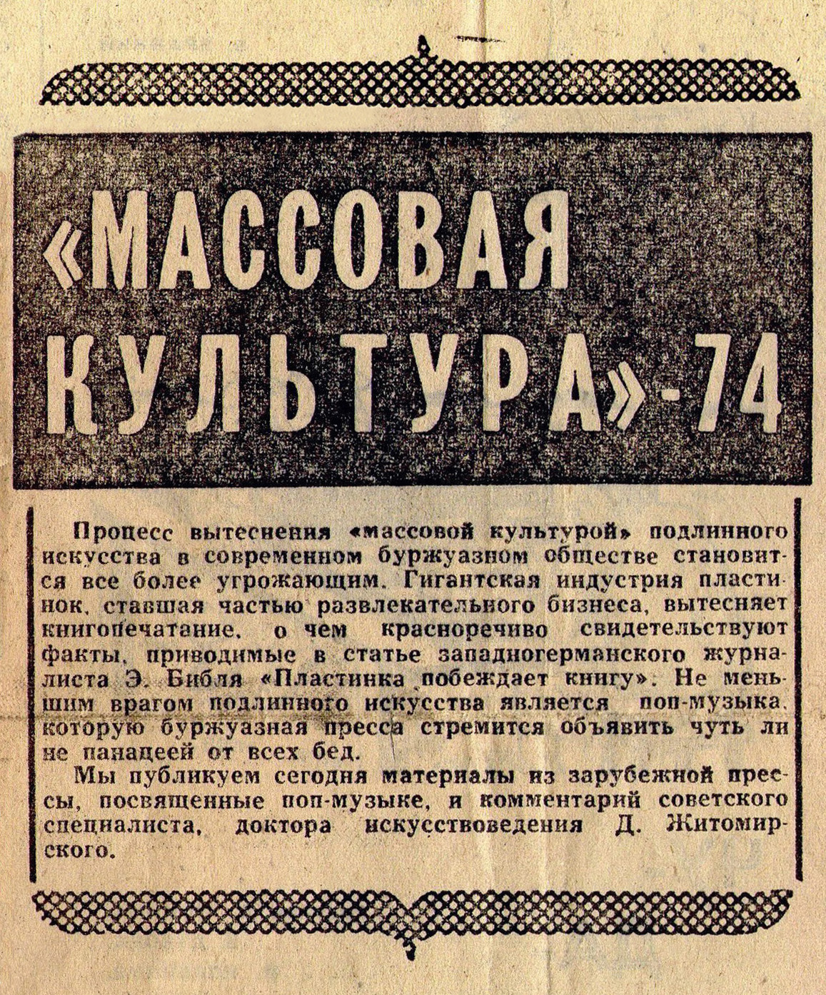 Тетралогия «МАССОВАЯ КУЛЬТУРА»-74 из газеты Молодёжь Эстонии
